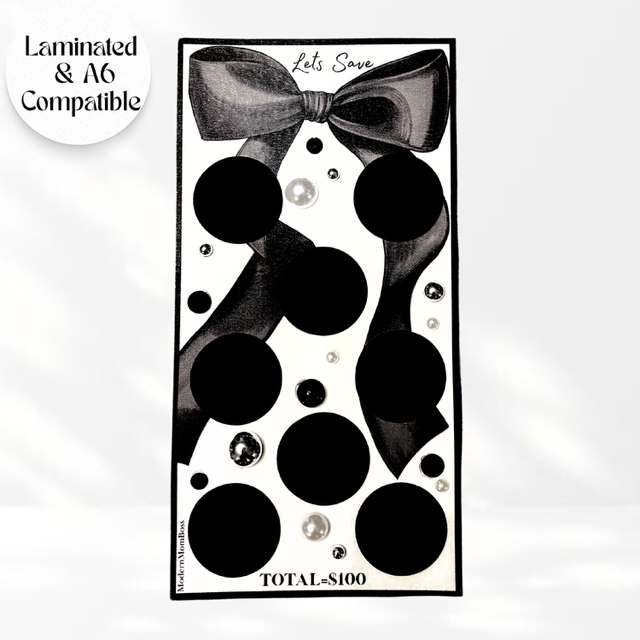 $100 Black Coquette Jeweled Savings Challenge- Scratch Off