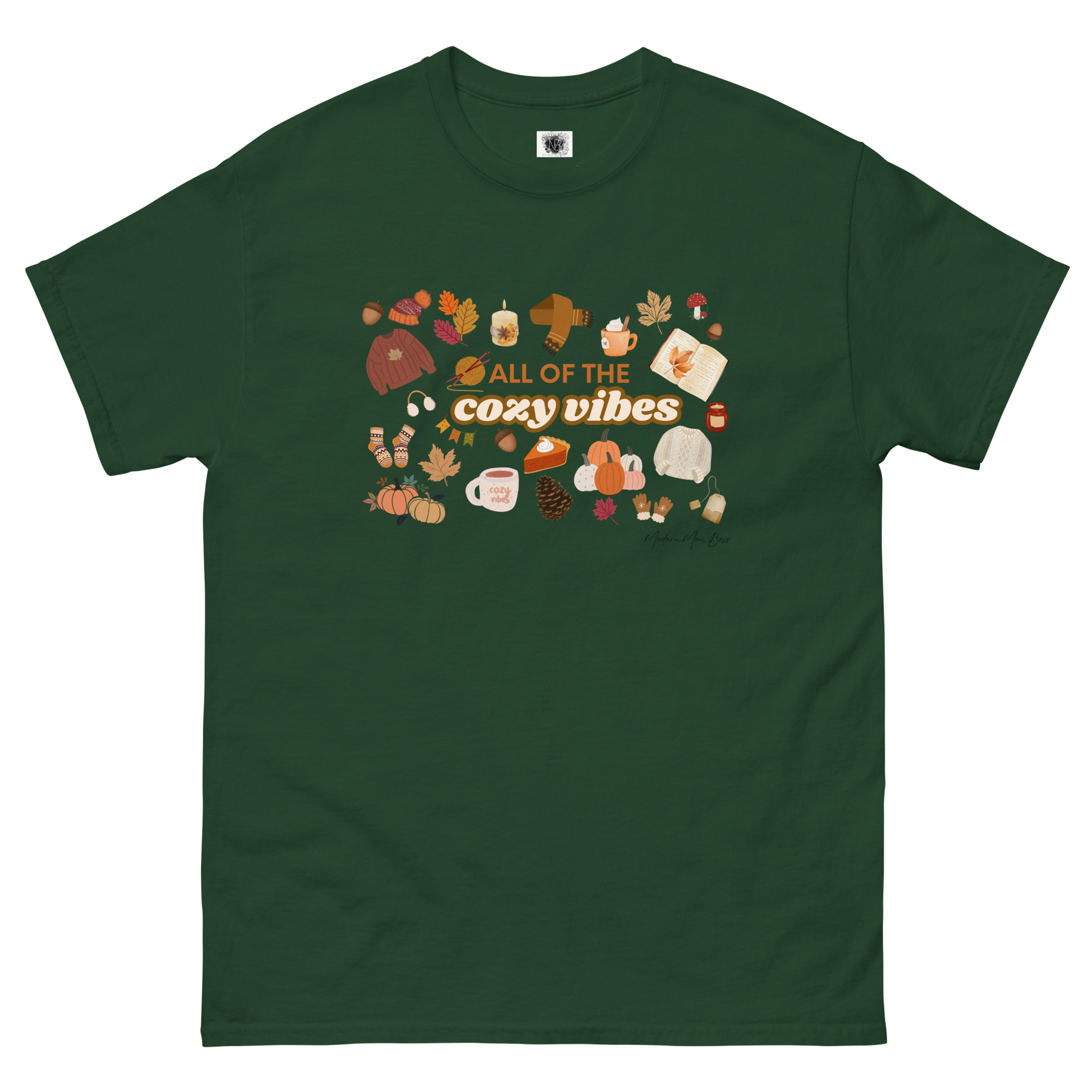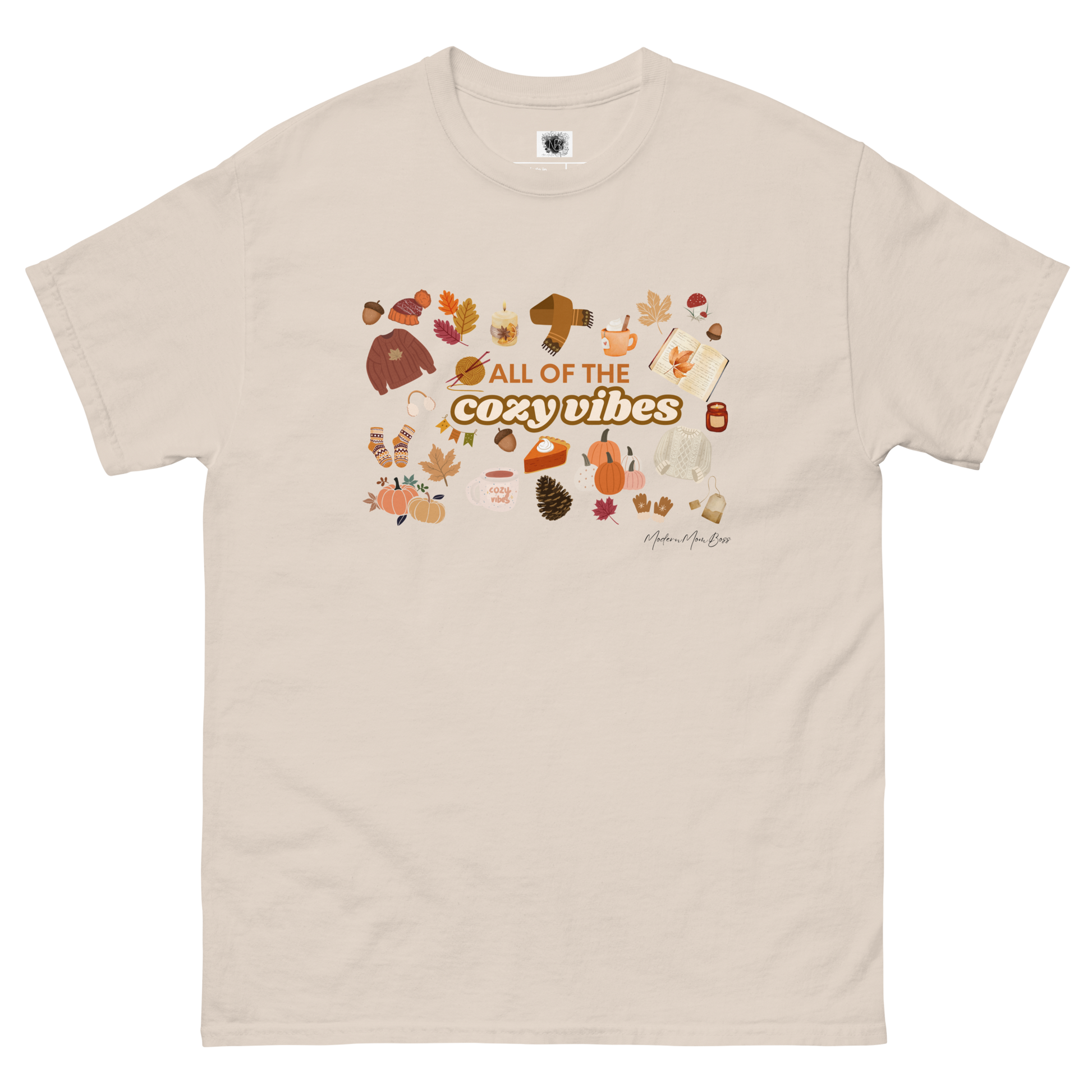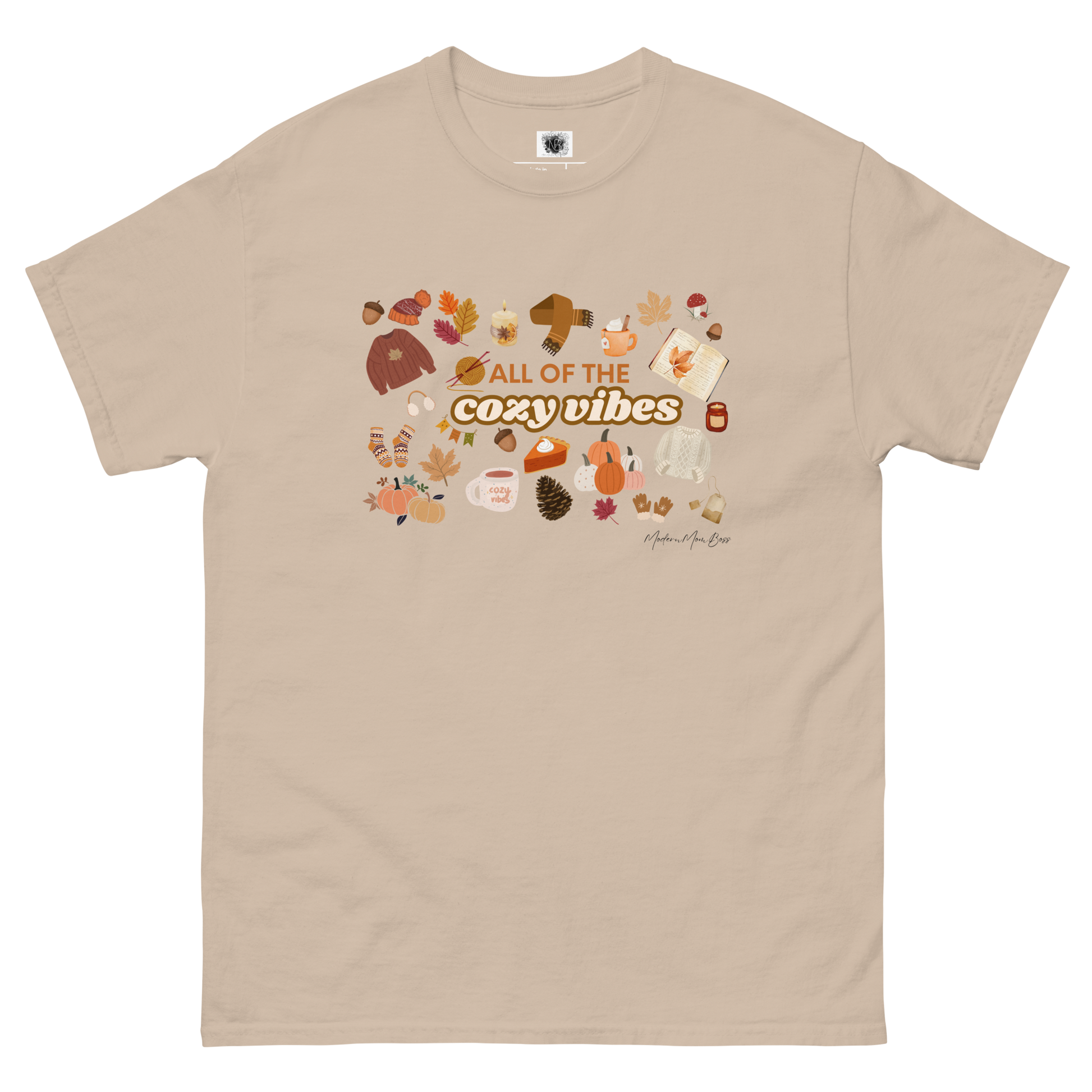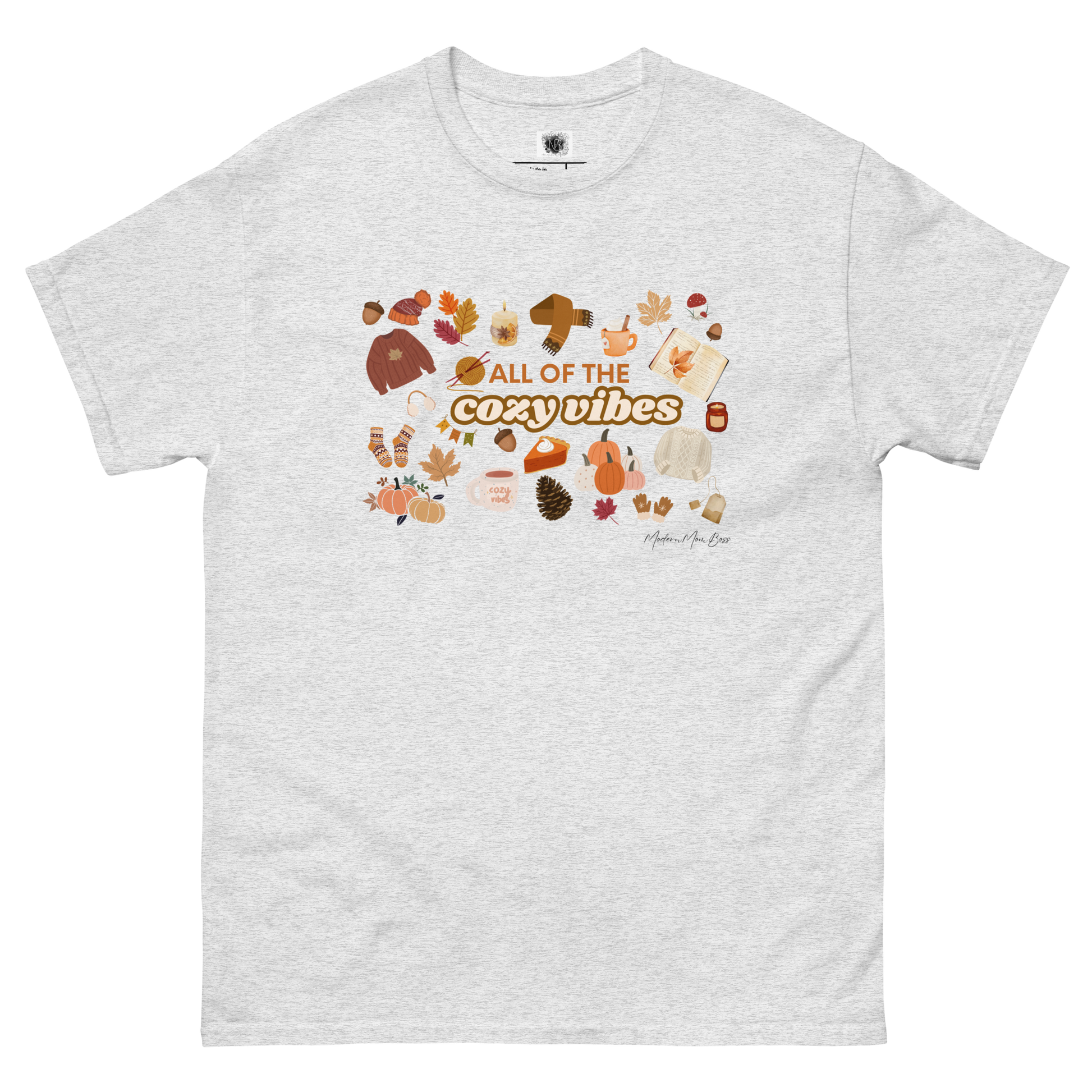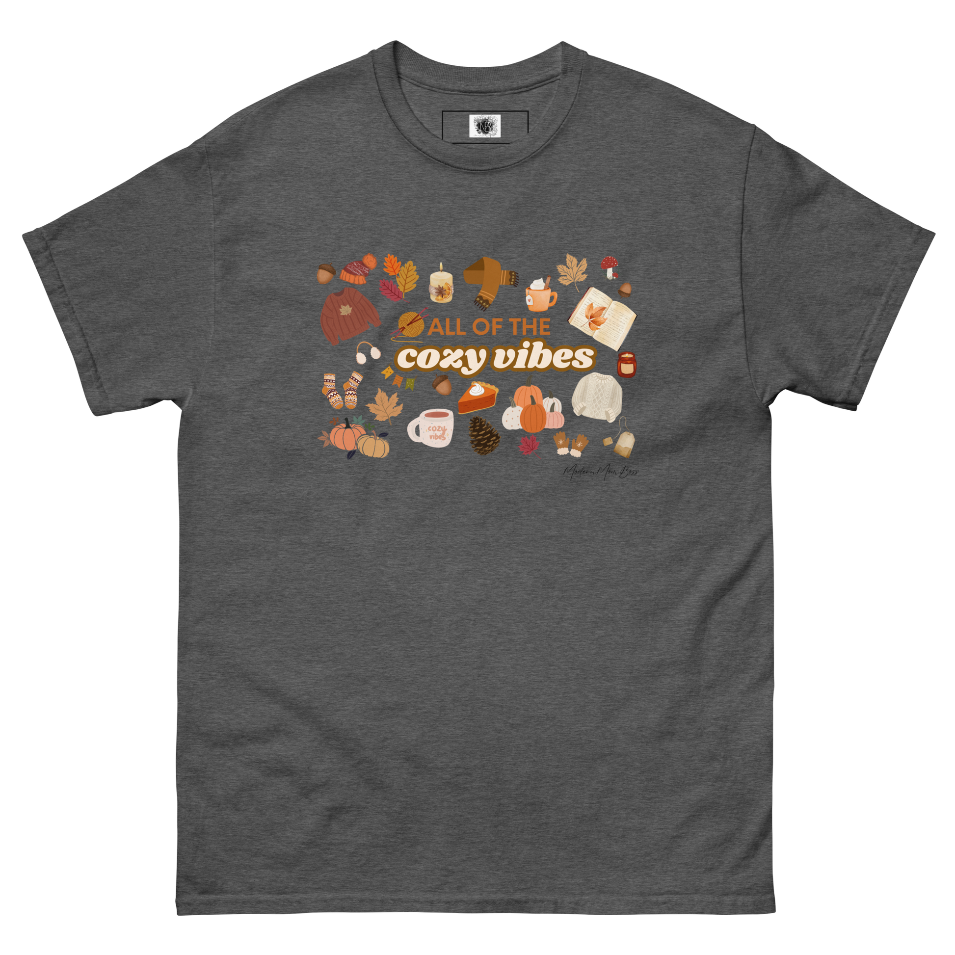 Celebrate everything you love about fall with our “All the Cozy Vibes” t-shirt! Featuring a playful design that captures the best parts of the season—think warm drinks, falling leaves, chunky sweaters, pumpkins, and all those little comforts we can’t wait for when the air turns crisp.