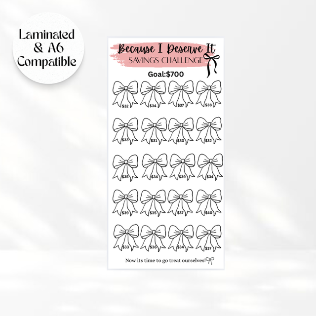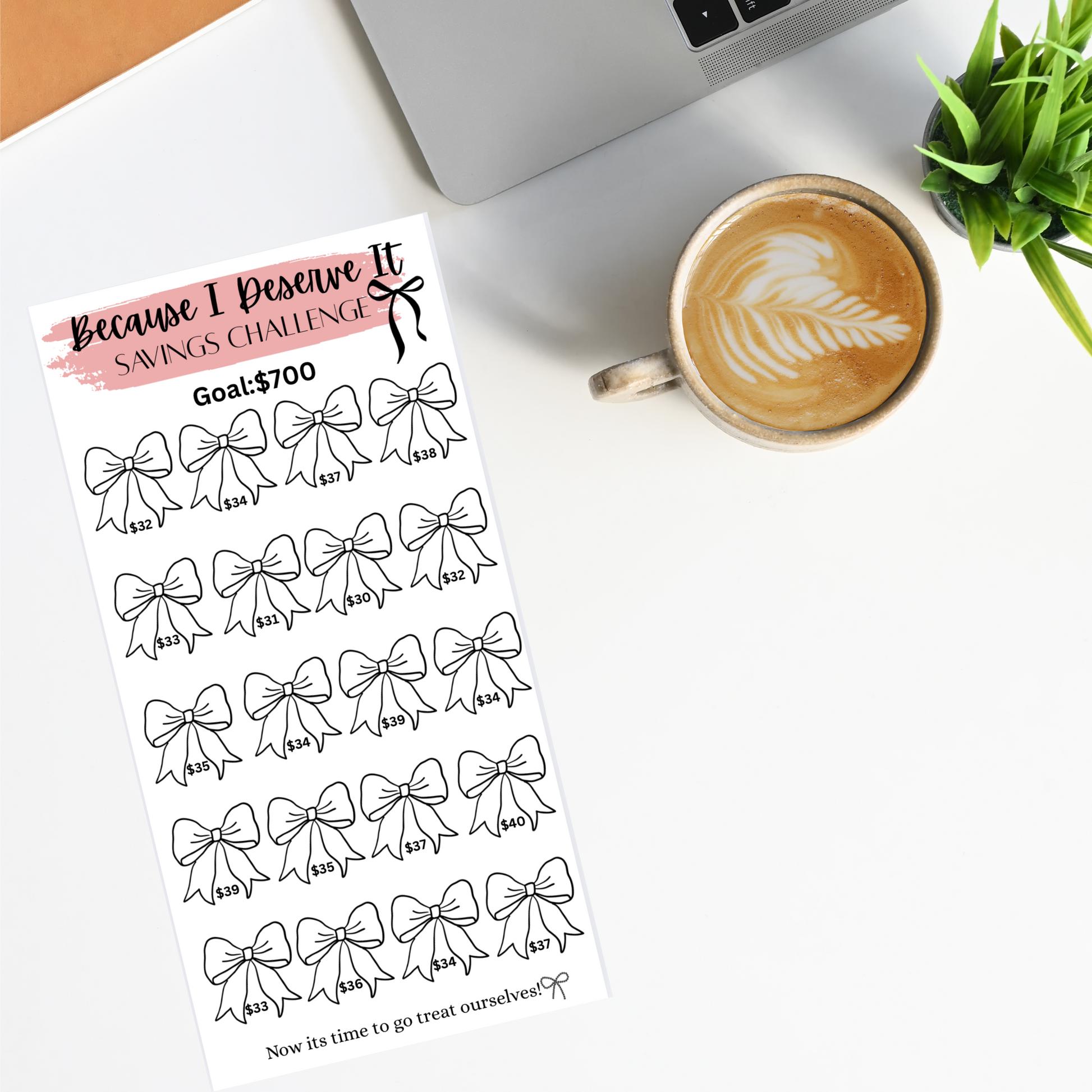 🎀 Because I Deserve It – Bow-Themed Savings Challenge