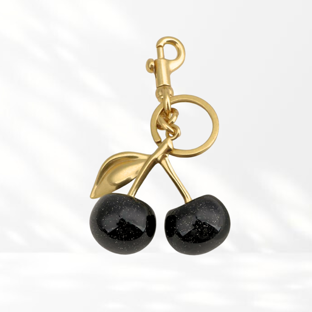 This gorgeous keychain is the perfect mix of classy and playful. Featuring sleek black acrylic cherries with just the right amount of sparkle, paired with luxe gold metal hardware, itβs designed to turn heads. Inspired by the iconic Coach cherry keychain, this beauty brings designer vibes without the price tag.