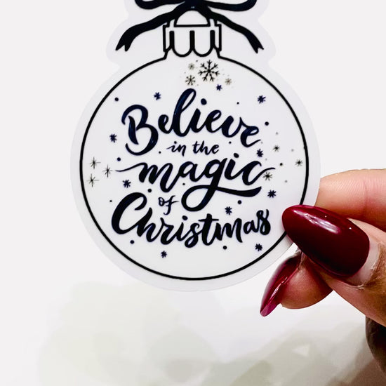 Bring a touch of holiday charm to any surface with this elegant black-and-white ornament vinyl sticker. Featuring the phrase “Believe in the magic of Christmas”, this design adds a cozy and nostalgic feel to laptops, water bottles, planners, gift packaging, and more.